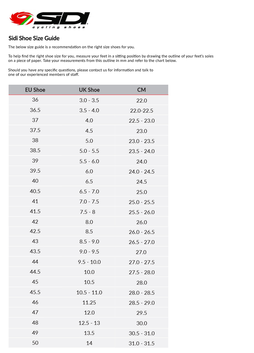 เช่น ถ้าวัดเท้าจริงแบบไม่ใส่ถุงเท้าได้ยาว 26.3 ซม. ก็ไม่ควรใช้ Shimano 42 ที่ยาว 26.5 ซม แต่ให้ขยับไปใช้ 43 ที่มีความยาว 27.2 ซม. แทน