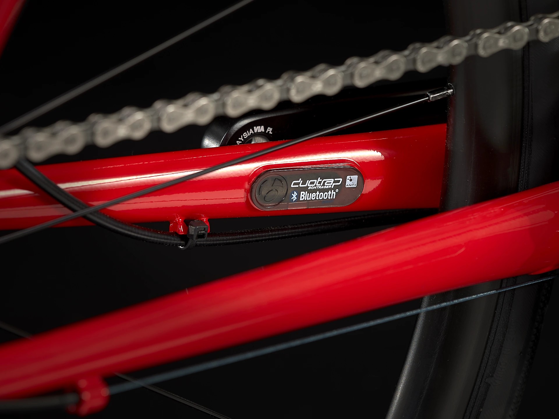 -เฟรมอลูมิเนียม อัลลอย น้ำหนักเบา รองรับการติดตั้ง Duotrap S bluetooth ที่เฟรม เพื่อวัดความเร็ว รอบขา